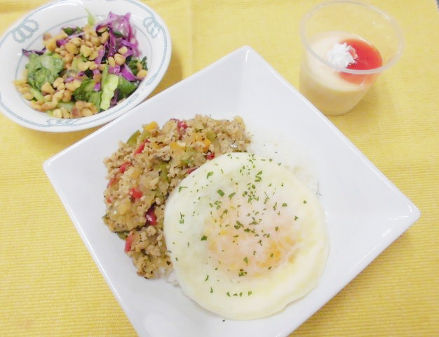 ・ガパオライス ・紫キャベツのサラダ ・豆乳プリン
