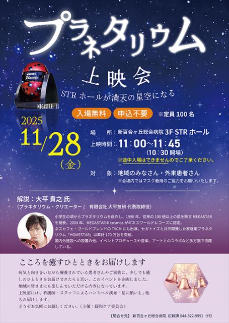 上映前には、看護師・スタッフによるハンドベル演奏「星に願いを」他もお届けいたします。